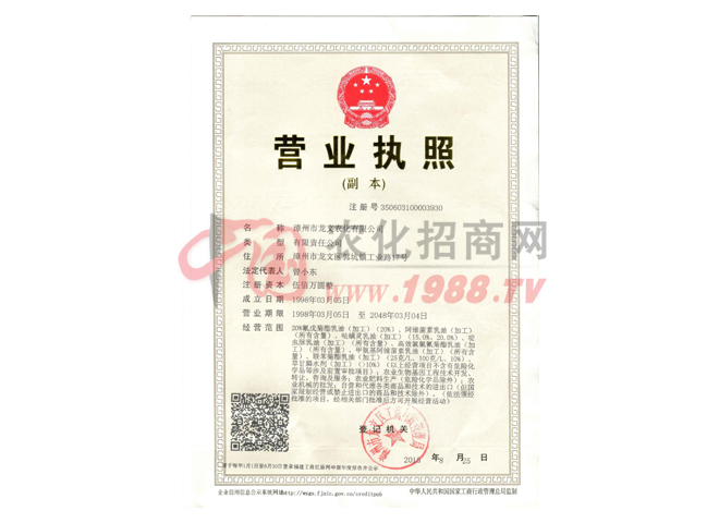 漳州市龍文農(nóng)化有限公司前身為福建省龍海農(nóng)藥廠,是福建省家農(nóng)藥定點(diǎn)生產(chǎn)企業(yè),在我國個(gè)五年計(jì)劃末期,由福建省工業(yè)廳投資,龍溪行政專署工業(yè)科籌辦興建的國有大型農(nóng)藥生產(chǎn)企業(yè),1957年底建成投產(chǎn),曾為地方國營漳州市農(nóng)藥廠,1961年更名為龍海農(nóng)藥廠,公司生產(chǎn)的三鹿牌系列農(nóng)藥是福建產(chǎn)品,為我國的農(nóng)業(yè)生產(chǎn)做出過杰的貢獻(xiàn)。企業(yè)1998年改制更名為漳州市龍文農(nóng)化有限公司,2013年與福建省科豐農(nóng)藥有限公司全面重組,企業(yè)重組后整合了公司的優(yōu)勢資源,有力的提升了企業(yè)的綜合實(shí)力和核心競爭力。